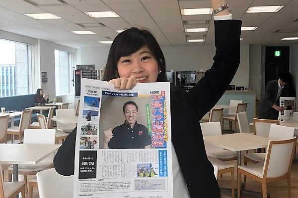 ですから、平昌大会のときには、本当に社員全員で盛り上がりました。社内向けのSNSがあるのですが、平昌大会が開幕してから利用者数が一気に伸びました。日本と韓国では時差がありませんから、SNSで「今、スタートしました」「第1チェックポイント何位です」というようにリアルタイムでコメントが書き込まれていく。それを見て、社長も「いいね!」をクリックしたりしていました。「GO! GAK」キャンペーンもありました。休憩ルームのところに小池選手の等身大写真が貼ってある。その写真と一緒に記念撮影してSNSに投稿するんです。