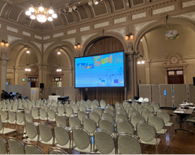 大阪市中央公会堂は、古く・多くの制約もあり、学会運営に向いているとは言い難い建物です。ただ、1世紀にわたり大阪の文化・芸術の発信拠点として、広く市民の皆様に親しまれ、中之島の景観に欠かせない美しい外観と内部意匠が歴史的建築物として魅力的なこともあり、我々が工夫を施することで克服できるとお勧めしました。